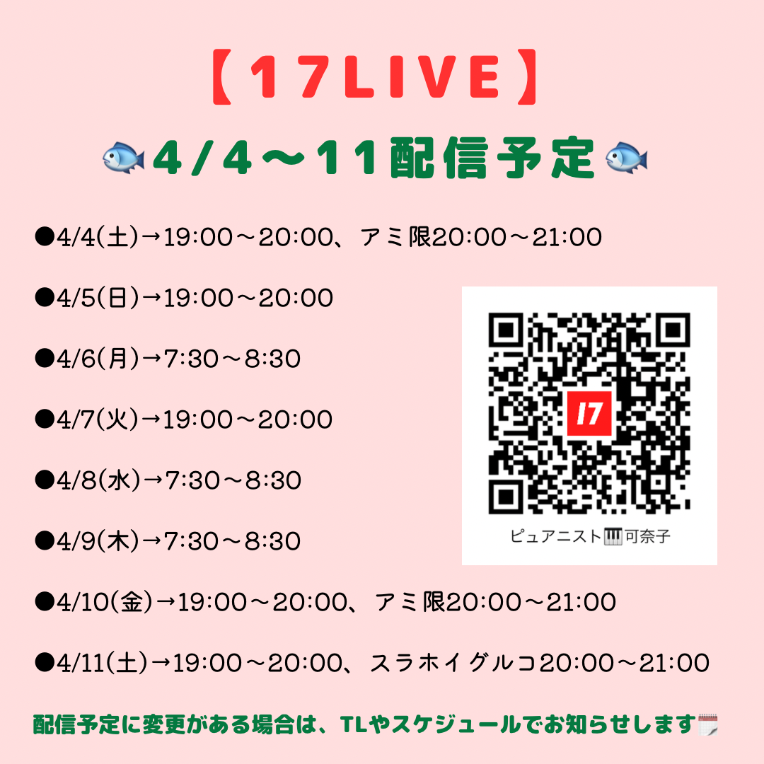 17LIVEとポコチャの配信予定とQRコードは、画像に載せています🙆♀️