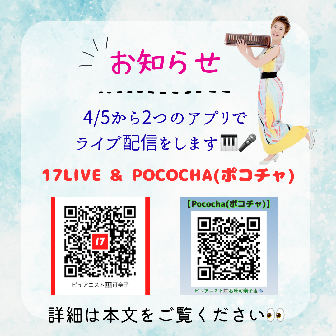 17LIVEに加えて、4/5からポコチャ(Pococha)でのライブ配信を加えます🎹🎤